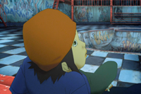 B-Devil is Gotham youth and often hangs around with three other friends who also skateboard. Like most of the young people in Gotham, B-Devil joined in on the speculation on the urban myth surrounding Batman. While taking in the sights from the roof of the Gotham State Empire Building, B-Devil and the other onlookers were held up by tech thief Jacob Feely. Batman intervened and according to B-Devil, was dressed in a robot suit that gave him amazing super powers. B-Devil later arrived at a local hangout and recounted his story. Minutes later, he and his friends witnessed Batman and Feely fight each other again.