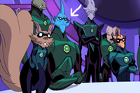 This Green Lantern has blue skin and fins protruding from his head. He participated in the extraction mission to find Kanjar Ro.