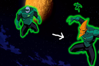 This Green Lantern has orange skin and a long pointed head. He participated in the battle against Sinestro and survived.
