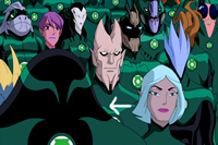 This Green Lantern has black skin and green slits for eyes. He fought in the battle against Sinestro and survived.