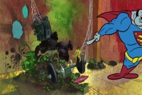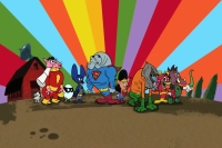 Heroes: Supermanatee, Flish, Shazham, Cybug, Green Lamprey, Wonder Wombat, Batmongoose, Robin's Egg, and Aquamandrill