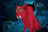 An alien kitten with three eyes was one of the creatures kept by Superman at the Fortress of Solitude. During a tour, Stargirl was instantly in love with the kitten and picked it up from its pen. It licked Blue Beetle with its long reptilian tongue. Superman showed Stargirl, Blue Beetle, and Firestorm the Phantom Zone Projector next. The kitten growled when Zod, Faora, and Quex-Ul passed by the view screen. It leaped from Stargirl's arms and landed on the Projector's console. Superman was pulled into the Phantom Zone. While they dealt with Zod, Faora, and Quex-Ul, the kitten inexplicably grew to a giant size. After Superman returned the trio of criminals back to the Phantom Zone, the kitten latched onto debris with its tongue and pulled it into its mouth. Superman asked them to start the clean up process with the kitten. Stargirl still loved it.