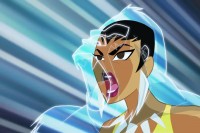 Vixen is a superhero with the power to call on various animals and their abilities through a magical totem and is a member of the Justice League. Vixen, Batman, and Cyborg responded first to Brainiac's arrival over Metropolis. Vixen wasn't intimidated by Brainiac's declaration of adding the city to his collection and goaded him to bring it on. Brainiac unleashed a torrent of orbs. Vixen summoned the bear and punched the orbs. The orbs analyzed her and generated an electric shock upon further contact as a counter measure. She tried in vain to do crowd control and get people to safety. In the aftermath of the battle, Vixen helped secure Brainiac for transport on Justice-1. Vixen responded to the plant crisis in Gotham City. Superman provided back up and suspected Poison Ivy was involved. Swamp Thing suddenly appeared and attacked Superman to their surprise. Vixen was knocked aside but used the rhino to bounce off a tree and hit the ground.