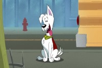 One morning, Krypto barked at a pigeon on a ledge outside Clark Kent's apartment window. The pigeon pooped and blew a raspberry and further infuriated Krypto. He plowed through the wall and chased the pigeon around Metropolis, slicing up the Daily Planet globe, freezing a tree, knocked a can of paint on a school bus, and nearly causing a tragedy at the Queensland Bridge. Krypto did a hard inhale to pull to pigeon to him and grabbed it. The pigeon pointed at a school bus in danger. He saved it before it fell off the edge of the bridge but let go to scratch himself. He flew after it and held it up from the front then flew it to Metropolis Elementary. As the bus left, the pigeon blew a raspberry at Krypto.