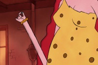 After the upper bathroom came crashing down to the first floor of the brownstone, E*Vil crashed at Wayne Manor. The demon Skaratata was accidentally released from its imprisoning sphere by King Tut when he lied he could kick Batman's butt. Giganta stuck a leg out and tripped Skaratata from behind a tree. Batman later recaptured the demon with a back up sphere. E*Vil gathered to watch the season finale of "Battle Ship Bake Off!" but the Joker spoiled the results, revealing Samantha won, and blasted an AntiGlow ray at them then they were all overcome with rage and trashed the brownstone. Giganta kicked a penitentiary and that led to a mass outbreak. Later that day, Little Batman hung from Giganta's hair while Claire shot up a fireball to distract her. Little Batman used the Bat-Lightwave Blocker on her and restored her to normal.