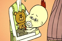Little Batman knew Vicki was right and they had to find the culprit next. Selina played with a cat tower Little Batman was using to be tall enough to steer the Batmobile. Claire was sure Batman was on it already. Little Batman thought Team Alpha did a great job but also thought it was weird Team Bravo didn't catch a single E*Vil member. He began to think they were busy with something else. Claire remarked he sounded like his dad but he didn't take it as an insult. He cleared his throat and called it an interesting observation. Claire recalled Bruce was acting secretive with Alfred earlier. Little Batman wondered about what since his birthday was ten months way, and they don't start planning until the six month mark. He was not content with the secret staying secret. Little Batman and Claire were behind Alfred in the Batcave as he guided Batman to the AntiGlow. He hid the screen and apologized, he was not at liberty to divulge what was about to be finished up. Little Batman told him he gave him no other choice. Claire nodded in approval. Little Batman took his cowl off and presented the cute face. Alfred shouted no in agony.