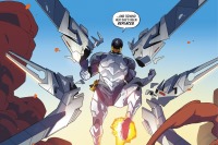 DuBois was given 24 hours to get the robot back and reminded him of the consequences of failure for him and for the planet. DuBois donned the Angel Array and tracked Amazo to Area 52. He opened fire on the X-T 00 Robot being ridden by Agent Slade Wilson of Task Force X. Wilson chided him for coming alone in an attempt to impress Checkmate. DuBois stated he didn't need back up because he didn't bring a sword to a gunfight. He invoked his armor's name and "Death By A Thousand Cuts" out loud. Several explosive shots were fired at the robots. Wilson dodged them and continued to heckle DuBois for focusing on him. DuBois stated Dr. Killgrave had eyes on Amazo, pointed out his life would improve and Waller's standing would fall with Wilson's death, and invoked a Black Wing Sweep. Amazo stepped in front of Wilson and defended him with a steel door. Amazo refused to let his family get hurt on Christmas. DuBois used Bloodsport and fired. Superman countered it with his heat vision. He fired Bloodsport again but Superman lent his strength to Amazo and they both used heat vision to force both sides to retreat.