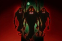 The Teen Titans went to Trigon's realm to retrieve his crystal prison but were attacked by a swarm of demonspawn. Three of the Corruptors welcomed her home then merged into a three headed, flame breathing hell beast. Cyborg and the Titans battled it while Raven then Robin went after the crystal. The last Corruptor followed and took on the form of Ra's Al Ghul. It threw its sword into the crystal and shattered it into pieces. It then attempted to play mindgames with Robin and ordered him to kill Raven in order to honor a pact with Trigon and become alive again. Robin refused to believe he was his late grandfather and they fought. Robin eventually gained the upperhand and kicked him into a column. Several lesser demons emerged from the column and grabbed "Ra's." "Ra's" pleaded for Robin's help. Robin beheaded him. The head reverted back to that of the Corruptor. One of the lesser demons took it, too. 10 days after Trigon was trapped in a shard of the crystal, Batman confirmed there were no more signs of the Corruptors.