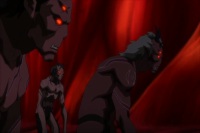 Elsewhere in Metropolis, Clark Kent and Diana left a theater participating in the Metropolis Film Festival. Kent began to succomb to the Corruptor's control and heard a voice saying, "Trigon lives." He ran off into an alley, leaving Diana confused. He bashed in head at an excavation site then saw a vision of Trigon's realm and the Corruptors. He saw a fire in the distance and flew to it. "Superman" made short work of Atomic Skull and nearly killed him. Batman attempted to poison Superman's body with a dose of Kryptonite and force the Corruptor out but it wasn't enough. "Superman" stated, "The rising is coming. You cannot stop it," his face transformed, and he flew away. Batman informed Steve Trevor who dedicated military satellites to track "Superman's" movements. Batman warned Wonder Woman everyone in the Justice League could be a target. The satellites lost "Superman" 55 miles off the coast of Metropolis. While the Flash checked the area, Cyborg scoured the Internet for sightings as well as anything on recent supernatural events.