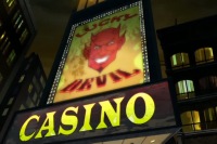 Las Vegas is a city in Nevada known as a major entertainment mecca. John Constantine and Jason Blood played a game of Poker against the Demons Three at the Lucky Devil Casino. Constantine was not pleased to see his four of a kind lose. Constantine suggested Blood let Etrigan play a few hands in his place. Blood only sought the Dreamstone in the Brothers' possession. With David Copperfield on his way, Abnegazar opted to bust them out and went all in. Constantine raised him with the House of Mystery and all of its contents. The Brothers deliberated and agreed to call with their relics. Constantine was skeptical about the combined value of a Soul Catcher, Algid's Ice Spiker, the Ghaurrazzi, and a chipped Dreamstone but he didn't want to be a poor sport and accepted. Constantine only had a pair of two's. He cheated and used his magic to undo Abnegazar's cheating and win. Abnegazar was infuriated and vowed to rip his heart out. Blood hid behind a column while Constantine fired the Ice Spiker at the Brothers.