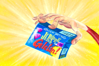 Quick Drying Jellyfish Gelatin is a popular gelatin brand in Plastic Man's city. Based on its promise of forming gelatin fast and that it then is shaped like jellyfish, the brand is geared toward children. After gathering his wits, Plastic Man utilized a variety of super market goods to defeat the Human Puddle. After the Puddle blew up the dam, Plastic Man quickly force fed him the Gelatin and saved the dam from bursting. The Puddle, meanwhile, began to mimic the properties of gelatin. A band of hungry citizens gave chase after the villain.