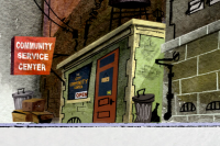 After Eel O'Brian was transformed into Plastic Man, he was sentenced to community service to pay back his debt to society. Located next to the local police headquarters, the City Community Service Center has become Plastic Man's adopted base of operations. His parole officer, Archie Bronson, is also based there.
