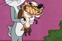 Bugs Bunny attended the 100th anniversary party at the Warner Bros. Studios but he set off the metal detector upon entry. Daffy Duck, substituting himself as security to prove to Robin he was more of a superhero, told Bugs Bunny to empty his pockets. Bugs asked if was sure but Daffy was adamant. Bugs unloaded a bear trap that clamped on Daffy's beak, a vicious badger that attacked Daffy immediately, and a bomb that detonated and sent him flying into the water tower.