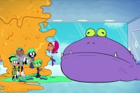 During a competition to see which Teen Titan was the mother, Starfire's attempt only left the Titans Tower's kitchen and the other Titans all dirty. She prepared a warm bath for them but merely tossed them into the open mouth of a giant purple worm. Cyborg called her a terrible mother. The worm closed its mouth then spit them into the living room. Robin declared a Mommy Melee to determine the winner. The worm chased Robin. He was tripped by Beast Boy and the worm tackled him out of the tower. Robin later returned atop a horse.