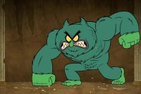 After the Teen Titans' search for the First Pot of Chowda in the Boston Catacombs came to an end, a giant green furry humanoid beast dropped down from the stalagmites and attacked them. The Titans' minds were so far gone from being revived repeatedly with Crystallized Lazarus Resin, they forgot how to use their powers to fight. Deadman got fed up, possessed the monster, made it punch itself in the face repeatedly, and made it jump to its death into the Boston creampie filling lake in the chamber.