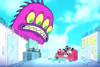 After defeating Control Freak and being relieved about no longer being subjected to commercial, the Teen Titans retired to the Titans Tower. A giant monster ripped the roof of the Tower and spooked them. It declared they would be right back.