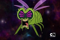 A giant bug became enraged by a ship in space that smushed its child and swallowed it whole. The ship computer Platz realized the bug's saliva was super acidic and ate through its shields at a rapid rate. Even at full throttle, the ship could not get free. 50% Chad came up with a half-baked idea to escape. He and the Tooth Fairy made their way to the mouth. Tooth Fairy lodged her crowbar Steenburgen under a tooth on the bug's bottom row. 50% Chad leaped off the top row and landed on the crowbar. The tooth popped out and the bug barfed the ship, Tooth Fairy, and Chad out into space. The ship gathered them up and took off with the bug in hot pursuit. It chomped at them while Folding Paper Man worked on the other half of the plan. The ship blasted a hole through Krypton and flew through it. The bug bashed the remains of the planet into pieces and gained on them. Folding Paper Man completed a giant paper version of the baby bug and launched into space. The bug teared up, hugged it, weeped, kissed it, and left with it.