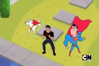 Krypto of the Krypto the Superdog animated universe received Brainiac's invitation for a free vacation on a Space House in another dimension. At the end when Brainiac threatened to destroy plants with his mother's Skull Ship, Krypto helped destroy it with heat vision alongside Superboy and Superman from the Teen Titans Go! universe. They were left stranded in space in their Space Houses.