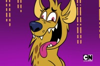 Lou is a laughing hyena and Harley Quinn's best friend. After Harley, Poison Ivy and Catwoman recruited Raven and Starfire for their roller derby team, Lou pulled up to the Jump City Rollerway in a convertible. Harley told them Lou was their team manager. He hit a parked car then backed up into a second parked car. They all hopped in and Lou hit the gas pedal, shaped like his paw. Lou parked at the derby by crashing into a dumpster. After their opponents, the Brainy Brawlers, scored 4 points, they took a break. Lou said something but it was all gibberish. Harley realized he was telling them if they wanted to win, they had to pull out the big guns. The others were inspired and gathered themselves. They ended up winning but Harley found a note on their windshield. She learned the Brainy Brawlers kidnapped Lou out of spite for losing to them. Starfire and Raven decided to help rescue him. Harley drove them to the Brawlers' hideout but it was all just an elaborate plan to trick Starfire and Raven into helping them pull off a bank heist and Lou was in the convertible the whole time. Starfire and Raven pursued them and took out Ivy and Catwoman. Raven conjured a giant jar of jam then Starfire heaved it in front of the convertible. Lou drove right into it. Lou and Harley popped out of the pile covered in jam. Lou licked half the jam off Harley's face and laughed.