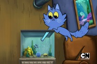 Mr. Puddles is Black Manta's pet cat. Starfire found him in a cardboard box while she and the other Teen Titans entered his submarine in search of Manta. Manta shrunk the Titans and dumped them into his aquarium tank. He was annoyed to see they let his cat out. Puddles ran past the port holes. Manta tried to call to him to get back inside. He eventually returned and pawed at the Titans in the tank. Aquaman revealed he had a paralyzing cat phobia and fled into his palace. The Titans were saved when Robin returned to the submarine with an orca. Later that day, Starfire asked what happened to Aquaman. Mr. Puddles gagged and coughed out Aquaman's trident. They all laughed at the implication. Mr. Puddles temporarily lived in the Titans Tower during pool season.