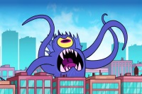A monster went on the rampage in Jump City but only Starfire and Cyborg were present. Since they were trying to get Hero Hotline to hang out with them and they had three members, Starfire and Cyborg thought it was meant to be. However, admitted they never fought crime before and only did appliance repair. The monster promptly smacked them into the side of a building. They realized they could fix the city instead of fighting the monster. The monster became frustrated with its destruction being near instantly undone. It eventually got tired and Starfire and Cyborg finished it off with a dual punch. It landed just at the beach shoreline.