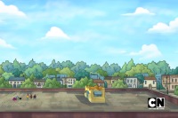 Undaunted, it keep siphoning the music away. The Titans introduced themselves and affirmed they came to help save their music. Pos pointed out now would be a good time to start. Before Robin could finish his sentence, the monster smashed the Titans with a tentacle. It finished stealing all the music and flew off into space. Pos dropped to his knees in anguish. David sobbed at the thought of their fans never getting to listen to their music again. Robin assured them they would help recover their music. Pos thought he meant he was calling the Justice League. Robin angrily stated the Titans were qualified to help. Maseo wasn't so sure and pretended to be Wonder Woman. David pretended to be Aquaman. Pos pretended to be Batman. They chanted "Justice League" until Robin angrily shouted they weren't calling them. Cyborg assured Pos they had a super computer back at the Titans Tower that could track down the monster. Pos wasn't feeling it. Robin cued Raven to open a portal back home. De La Soul was hesitant to go through the portal out of safety concerns. Raven assured them her portals were safe. They tried to walk away but Raven conjured a tentacle and pulled them through.