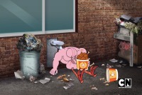 According to Robin, Silkie went to Austria to fulfill his dream of becoming a world famous bodybuilder. Silkie trained at a gym but his new robust upper body annoyed Sergei, the reigning champion. He sneaked around the gym and got up behind Silkie and snapped his pants. He mocked the pants, declaring real bodybuilders wore booty shorts. While both were on trampolines during reps with barbells, Silkie's pants fell and revealed he had actual chicken legs for legs. Sergei and everyone else in the gym laughed at him and he fled in shame. Silkie considered giving up on his dream to become a world famous bodybuilder. He sulked in an alley while eating a bucket of chicken legs. He heard a voice behind him telling him having chicken legs didn't mean he had to be a chicken, it just meant he had to train like one. The coach leaned out the window. Silkie was inspired. The coach's training methods were unconventional. He threw a rooster on the treadmill to chase after Silkie.