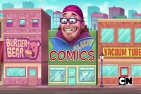 Gleek! Comics is a comic book store located in Jump City next to a Burger Bear and Vacuum Tubes store. Starfire was sent to Gleek! after Toy Master's curse turned her into a collectible. Robin and collectible Cyborg arrived at the store to look for the next teammate but Cyborg stopped him and said he had to look off the beaten path. Robin speculated the next collectible would no doubt be in the clutches of some weirdo who stood in line before the store opened to get his filthy hands on them. Such a weirdo stepped out of Gleek! with a brief case. Despite Cyborg's hesitance, Robin followed after him.