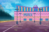 After Raven cast a spell that took the Teen Titans back to the 1980s to facilitate Robin and Cyborg's bet about finding and buying music back then. They went off the roads, down a steep drop, and crashed through a wall into the mall. Starfire misunderstood a girl's compliment about her hair and threatened their lives until Raven explained. She tried to return the compliment but the damage was done. The girl and her friend cried. The Titans noticed everyone was making eye contact and talking to each other instead of looking at their phones. Cyborg found Jump City Jams but realized he didn't know how to find music in a store. Robin instructed him to find the genre, flip through a million records by hand, and find something. Cyborg was overwhelmed by all the different genres but found a B.E.R. album. Four Eighties Jerks arrived and displayed unmotivated hostility towards the Titans. Cyborg swiped the album back and the Titans fled the mall on their bikes. The jerks followed.
