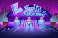 Starfire and Raven went to the Jump City Rollerway during a night out on the city. They loved the smell of the place. Starfire noted the aroma of sweaty feet encased in the shoe leather. They got their pair of skates, laced up, and skated away. Raven conjured two portals to pull off a move. Harley Quinn, Poison Ivy, and Catwoman noticed their sweet moves. Ivy used the vine around her arm like a bracelet and grabbed Starfire and Raven. Raven assumed they were going to rob the Rollerway. Ivy assured them they were admiring their skating. Raven stated they didn't take compliments from villains. Harley implored them to hear them out. Ivy revealed they were looking for two new recruits to join their roller derby team. Starfire and Raven didn't know what that was. Ivy asked them if they liked skating. Harley asked them if they liked punching people in the face. Raven quipped who doesn't. Harley asked they let them show them what roller derby was all about. They agreed and headed outside. Harley kicked the door open, and her pet hyena Lou pulled up in a convertible. Harley told them Lou was their team manager. He hit a parked car then backed up into a second parked car. They all hopped in and Lou hit the gas pedal, shaped like his paw.
