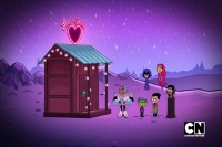 After the Teen Titans recruited Dracula to find Love, Cyborg took them to the Love Shack. Beast Boy thought it was just a creepy old shack but Cyborg said it was based on the classic hit song. He noticed glitter on the front porch. They headed inside. Raven saw glitter in the hallway. Starfire found it to be quite the funky old shack with a rusty tin roof. Dracula warned them against moving around so much. Robin realized it was a death trap and told everyone to run outside. All but Robin avoided the shack collapsing on top of them.