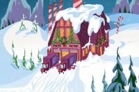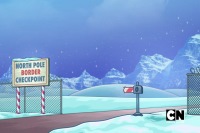 Santa Claus' Village is located in the North Pole. It is populated with his home, a giant toy factory, reindeer stables, and gingerbread houses. The Teen Titans infiltrated the village disguised as elves in an effort to find the Naughty List and erase their names after three years of no presents. Cyborg went to the toy factory but was so loud he stopped the converyor belts and the Elf Boss stepped out. Cyborg pinned the noise on a fellow elf and got him fired. Beast Boy went to the stables and ended up insulting Rudolph. Raven and Starfire met the Gingerbread Man and ended up eating him, his pet cat Gumdrop, belongings, and house. Robin entered Santa's home and found the Naughty List but couldn't erase the Titans from it. The Titans voiced their beef with Santa but were lectured about the true meaning of Christmas. Robin opted to blow up the toy factory. Santa did not relent and tried to prove his point of the importance of spending time with family and friends. He cracked under the pressure of the awkward silence and realized he was wrong. Presents mattered the most. Raven used her magic to return the factory to normal. Santa and the Titans departed the village and delivered presents.