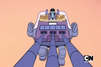 Dr. Light made Jump City's utility company his next business venture and bought it. The Teen Titans were his highest paying customers because of their wasteful lifestyle. Light declined to give them a discount to help with their $4000 bill and opted to maintain his nine figure salary. The Titans installed eco-friendly upgrades to the Titans Tower like solar panels, wind turbines, a cow for natural gas in the kitchen, and a compostable toilet to help them grow their own vegetables. They proclaimed they were off the grid and the Tower flew up into the sky, detaching from the meter. Dr. Light headed them off in the Power Plant, reattached meters, and dragged the Tower back to the island. The Titans used their renewable energy to the maximum to overload the grid. The solar and wind energy and natural gas brought the grid nearly to the threshold but the gas flooded Light's cockpit. After the compostable toilet was launched into the Power Plant, the building exploded with Light inside and the Tower lifted off into the sky again.