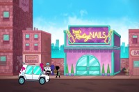 The Teen Titans convinced Robin to go to nail salon to unwind from several battles with Brother Blood after they got a flier in the mail. They went to Tami's Riveting Nails. Cyborg called it an emergency room for his soul. Robin got second thoughts and wanted to leave. They met their mani-pedi specialist, a robot named Tami. The Titans took turns translating Tami's beeps for Robin. Starfire told him Tami said their visit will be truly memorable. Tami showed them the salon's services: Diamond Executive, Platinum VIP, Gold Luxury, Silver Shimmer, Bronze Basic, and Silicon...Sure. Robin warned them she was just trying to upsell them, He stated to Tami they were just having their nails done. Beast Boy mistook a foot bath for a fish pond and turned into a fish. As they fed on some food, Beast Boy realized it was Robin's foot. The others laughed at him. Raven chose the sea salt bath, Starfire chose the peach scrub, and Cyborg took the 1040 motor oil. Robin reminded everyone they were just getting basic service. Starfire asked about getting tiny pictures on their nails but Robin said no.