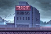 The Top Secret Government Science Facility is around 10 miles outside of Jump City. The Titans raced to the Jump City Animal Refuge to stop Dr. Military. Raven thought they should be more careful since it was raining hard. Cyborg refused to slow down because of the ducks being kidnapped. She told him to watch out for the lightning. It struck a boulder and it rolled down towards them. She told him to watch out for the Top Secret Government Science Facility. They crashed into the building. She told him to watch out for the top secret science experiment. They got hit by a laser. The T-Car was vaporized but they survived. They transformed into cars. Robin realized the laser must have combined their molecules with the T-Car's. Sticky Joe happened to be squatting on the property when the laser hit him, too. His molecules combined with a semi-trailer truck. The Titans soon learned when they dried out, they turned back to normal. Beast Boy luckily brought water in a bucket for hydration purposes.