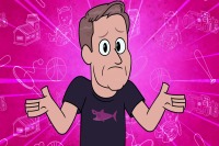 Jay Bastian is a creative executive at Warner Bros. Animation. He accompanied the Teen Titans and The Crew to a new office building built for Robin. Cyborg keyed on his last name and asked if it was spelled like the kid from "The Neverending Story," one of the greatest movies of all time. Bastian never saw it. Beast Boy turned into a Triceratops and led the wagon for The Crew. Bastian pointed out so many great movies were filmed at the Ranch like "Christmas Vacation", "High Noon", and "Lethal Weapon". Robin hyped a new feature at his building, hot desks. Regan didn't like the idea of employees having to reserve their own office space on a daily basis. Nor did Bastian like having to leave with all his toys every day. Cyborg wanted to play the most epic soundtrack of all time but Bastian was getting tired of him mentioning "The Neverending Story" then admitted he was into Westerns. He revealed they entered an area was once part of a Wild West movie set. They were attacked by three bandits.
