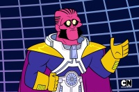 Beast Boy turned into a sea hare and slipped free then coughed up some mucus. Cinderblock was taken aback then punched the Titans. Monitor was furious they were finding even dumber ways to mess up. Starfire claimed they did it for Robin's sake. Robin was confused. Raven explained they intentionally held back since Robin was powerless. Robin denied it and claimed he made them bring out their A game and without him, they would bring their C+ game at best. Monitor found their excuse outrageous and revoked their powers. They found themselves in the Titans Tower. Starfire had no powers and Cyborg, Raven, and Beast Boy were powerless humans. Plasmus triggered a crime alert. Raven felt they should lounge around like normal teenagers and look at their phone. Robin understood then whacked them with his staff. They drove to Plasmus, who was attacking the Wayne Enterprises building. Robin had to instruct them to punch and kick but they got tired and bored even after Robin suggested biting every so often to spice things up. Plasmus flicked them into the side of a building with a toe.