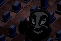 An unnamed obake demon is a creation of Brushogun. It appears to based on Enenra, a Japanese monster composed of smoke. It is believed that only the pure of heart can see it. Obake was dispatched to attack Raven before she could reveal Brushogun's origins to her team. After Brushogun was freed by the Teen Titans, the obake ceased to be.