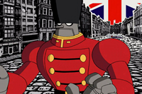 In his insane bid to reclaim America for England, Mad Mod tried to brainwash the citizens of Jump City during Independence Day and unleashed an army of robots bearing an homage to the Red Coats, the nickname for the historical British Army. The American colonists later referred to them as "Bloody Backs" and "Lobsters." In the 17th century, infantrymen were required to wear a coat with venetian red and white facings as part of the New Model Army Ordinance. However, the color of red began to vary based on which regiment a soldier belonged to. Eventually it became something of a ceremonial trend and it was rumored red was chosen so that blood would not show up on their uniform during battle. In reality, it was to enhance morale and visibility on the field of battle. Mad Mod's army appears to based specifically on the 20th century Coldstream Guards. After Robin destroyed Mod's cane, the robots all deactivated.