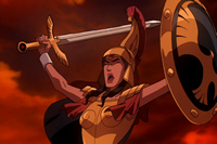 Hippolyta is the queen of the Amazons. They were slaves of Ares and made into loyal servants of Zeus. Hippolyta was raped by Ares and she later went on to lead a revolt for the Amazons' freedom. With the Lasso of Truth and Boomerang Tiara, Hippolyta killed Eris, killed her son Thrax, and defeated Ares.